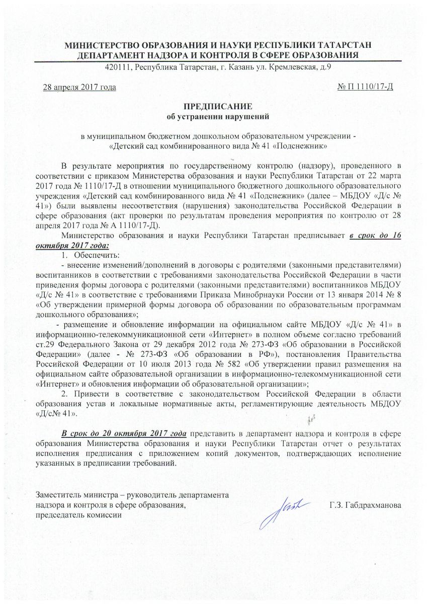 Предписания органов осуществляющих государственный контроль (надзор) в сфере образования.