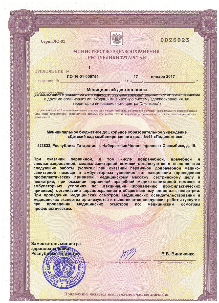 - Лицензия на осуществление медицинской деятельности Приложение к лицензии