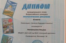 Нигматуллин Ильмаз, воспитанник группы №10, стал победителем третей степени в муниципальном этапе Всероссийского конкурса хэкологических рисунков. Поздравляем!