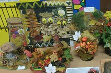 Самым настоящим зеркалом, в котором отражается красавица осень, становятся осенние поделки. Чтобы создать интересные осенние поделки своими руками, можно применять различные материалы.Вот и наши воспитанники и родители проявили весь свой творческий потенциал и холл нашего сада преобразился разнообразными композициями.