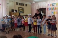 Победа в Великой Отечественной войне - подвиг и слава нашего народа. День Победы остается неизменным, всеми любимым, дорогим, трагичным, скорбным, но в тоже время светлым праздником. Для расширения знаний об истории нашей Родины, с целью воспитания нравственности и патриотизма, в преддверии 9 мая в детском саду прошли мероприятия посвященные Дню Победы. Педагоги ДОУ украсили учреждение плакатами, цветами. Воспитатели всех возрастных групп подготовили подборку книг и иллюстраций о Великой отечественной войне, а также прошли тематические беседы на военную тему. Итогом празднования великого дня победы стал "Фестиваль солдатской песни", который прошел 8 мая 2018 года. Дети с огромным удовольствием танцевали, рассказывали стихи, слушали и исполняли песни военной тематики, о мире, дружбе. А самое главное детей сплотило чувство великой гордости наших ветеранов, Родину и мирное небо над головой.