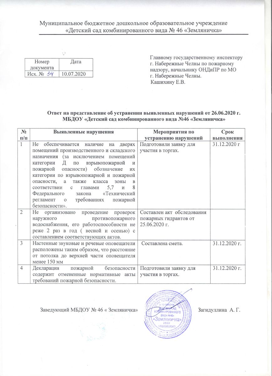 Ответ на представление об устранении выявленных нарушений от 26.06.2020 г.