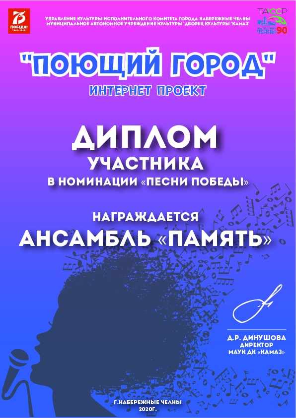 Диплом участника "Поющий город" 2020