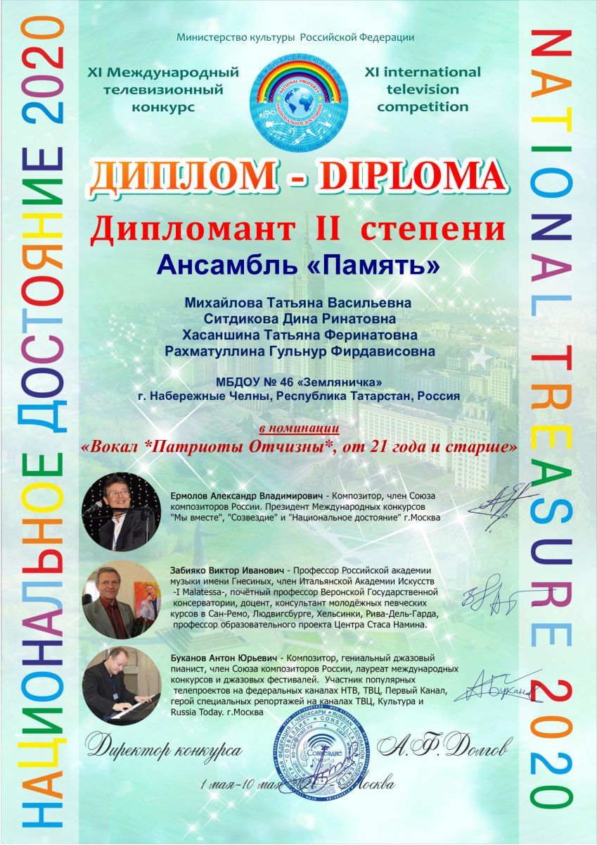 Диплом Лауреат 2 ст. Международный телевизионный конкурс 2020