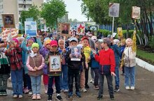 После праздничного мероприятия прошла акция «Бессмертный полк», в которой приняли участия дошкольники всех возрастных групп. Воспитанники построились в колонны и с фотографиями своих родственников-фронтовиков прошли по территории детского сада.