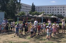 Игры с водой внесли в праздник ещё больше веселья, задора и смеха. Дети с интересом играли в различные аттракционы с водой.