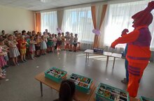 На праздник к детям пришли Фиксики - Симка и Нолик и вместе с детьми попробовали свои силы в робототехнике -