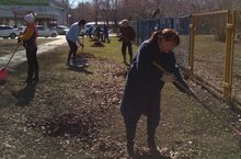 Работы по благоустройству территории ДОУ сотрудниками в рамках весеннего месячника