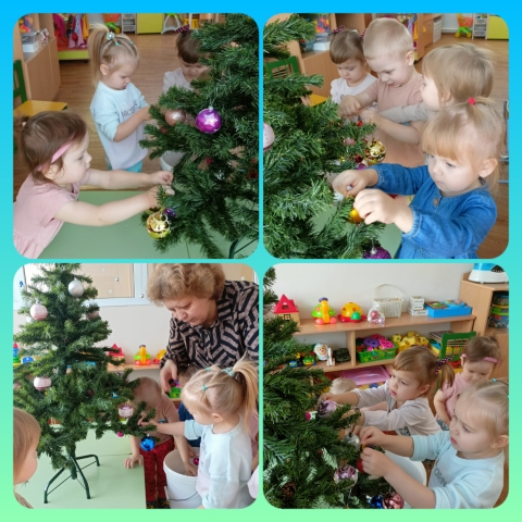 Самые младшие дошкольники очень ждут новогодних праздников и уже украсили свою ёлочку разноцветными игрушками. Дети были очень довольны и счастливы с появлением в группе нарядной и красивой ёлки.