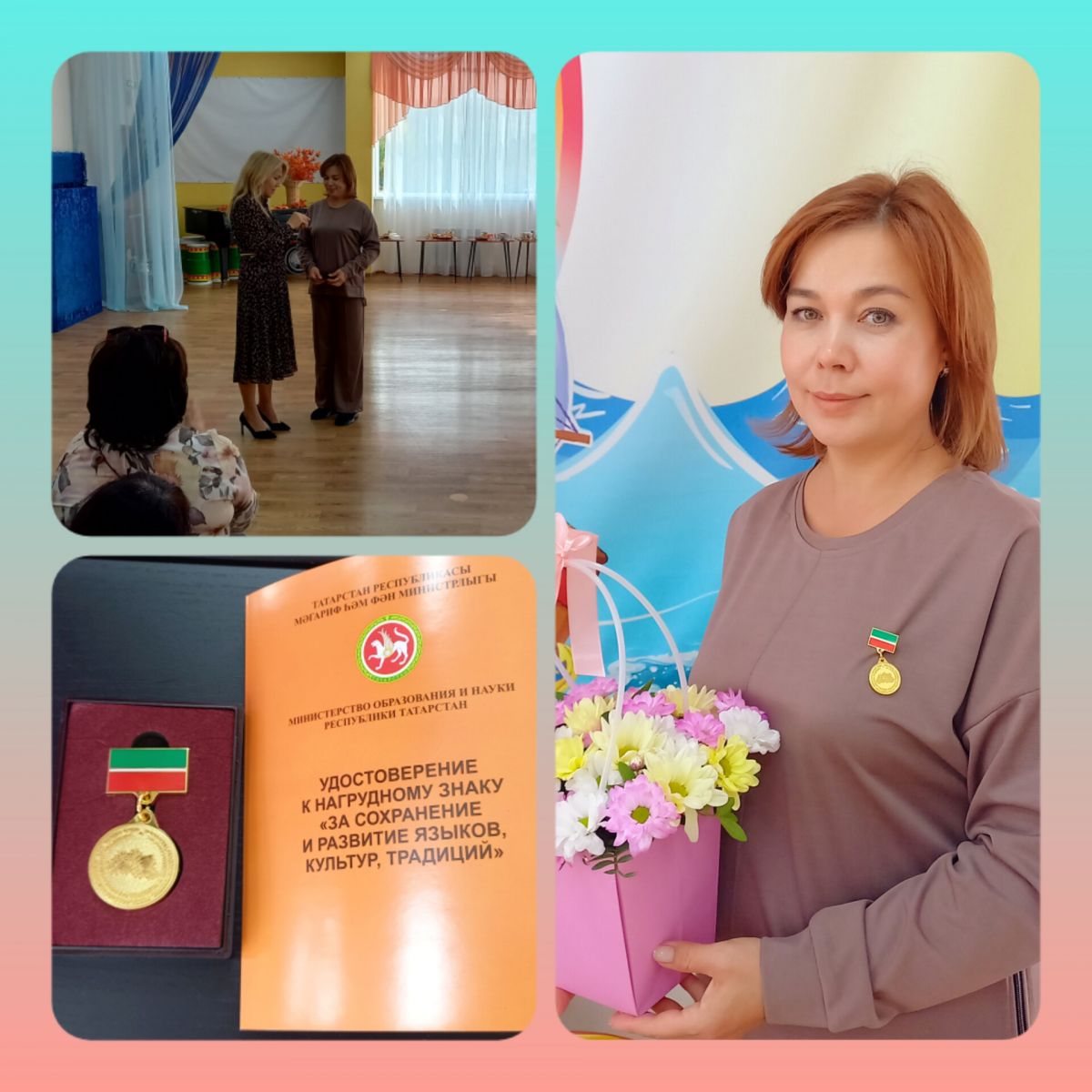 В честь профессионального праздника - Дня воспитателя и всех дошкольных работников – Нагрудным знаком «За сохранение и развитие языков, культур, традиций» Министерства образования и науки Республики Татарстан удостоена Хуснулгатина Чулпан Рустамовна.