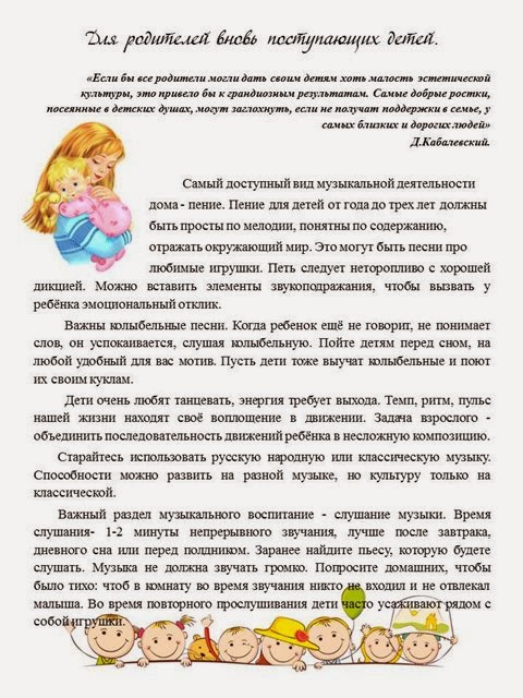 Консультация муз.руководителя "Для родителей вновь поступающих детей"