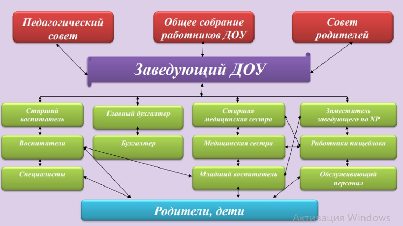 Единоличным исполнительным органом Детского сада является заведующий, который осуществляет текущее руководство деятельности ДОУ.