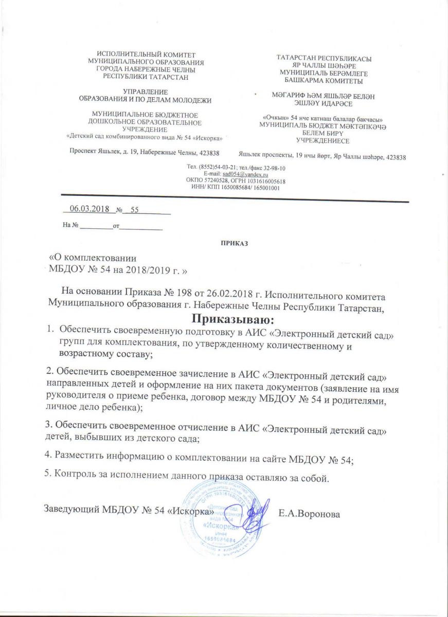 | Короткое название: | МБДОУ "Детский сад комбинированного вида № 54 "Искорка" |
