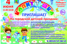 4 июня 2022 года с 11.00 до 18.00 в парке культуры и отдыха Победа состоится праздник "Капитошка". В программе: концерные номера, конкурсы, детская игровая развлекательная программа от Набережночелнинского цирка, консультации от детских врачей и специалистов образования.
