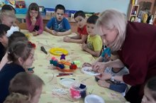 Сегодня мама Кирилла вместе с детьми покрасили и украсили яйца к празднику Пасхи.
