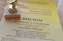 Поздравляем ансамбль "Кукача", музыкального руководителя Султанову Гульназ Баязитовну со званием ЛАУРЕАТА I СТЕПЕНИ в номинации "Ансамбли" (Эстрадный вокал). Так держать!