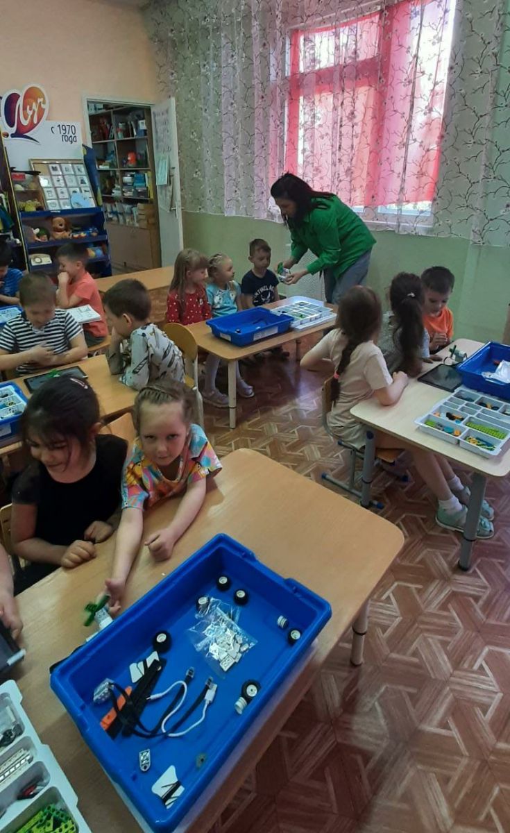 Опубликовано: 12.05.2023В рамках проекта "РобоТехноПарк "КАЛЕЙДОСКОП" в клубе изобретательства и робототехнического творчества «Дружба» на этой неделе в группах 2,5,6,7 прошло шестое занятие с конструкторами LEGO-WEDO 2.0.