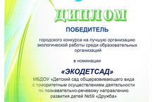 Наш детский сад ПОБЕДИТЕЛЬ городского конкурса на лучшую организацию экологической работы среди образовательных организаций 29.11.2017