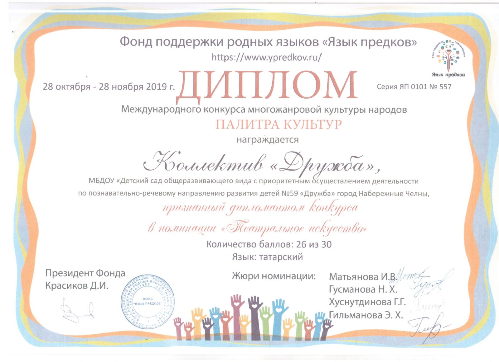1.Конкурс многожанровой культуры народов "Политра культур" театральный коллектив "Дружба" диплом