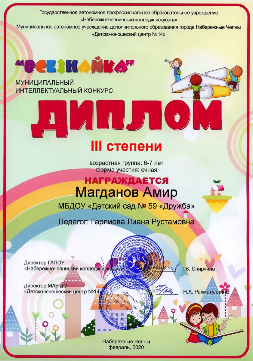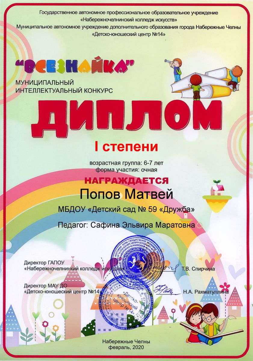 1.Интеллектуальный конкурс "Всезнайка" Попов Матвей диплом 1 степени , Магданов Амир диплом 3 степени, Крючкова Анастасия диплом1 степени