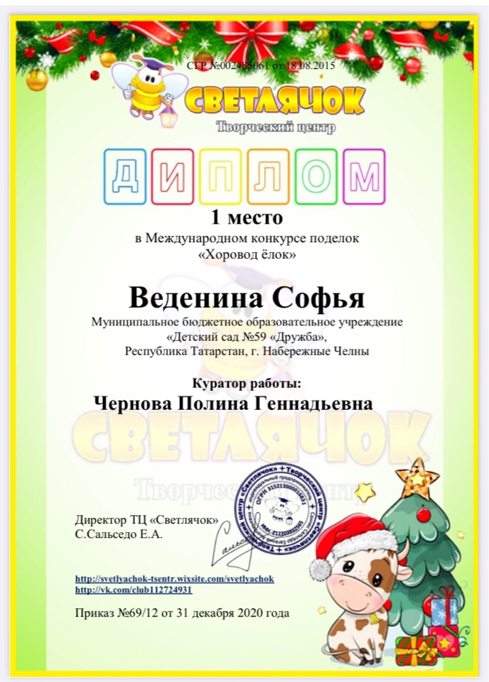 2. Конкурс "Хоровод елок" Веденина Софья (диплом 1 степени)