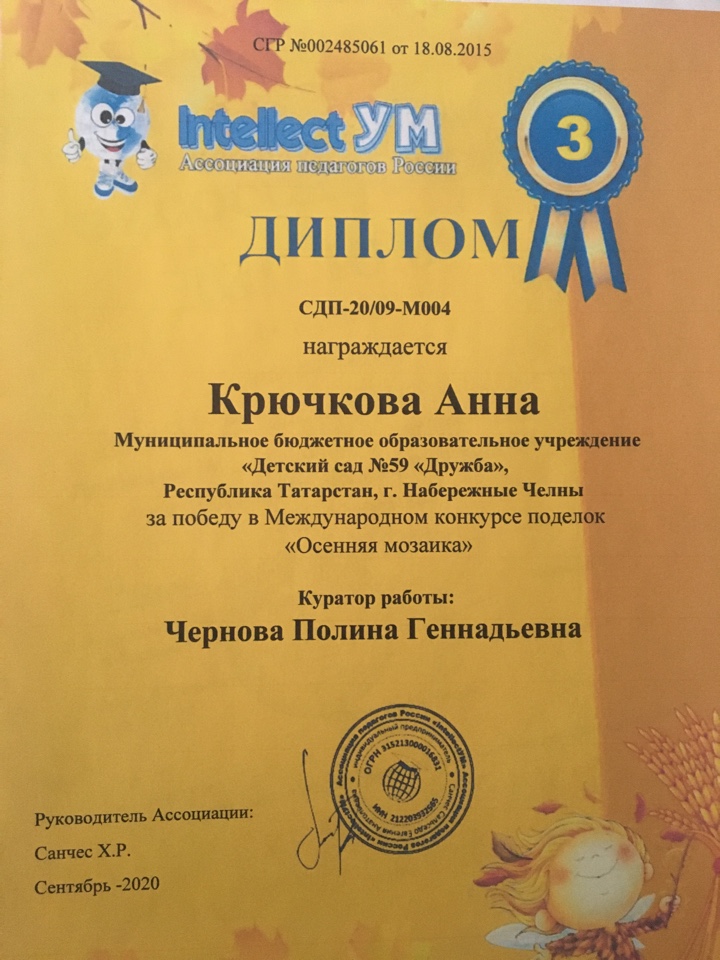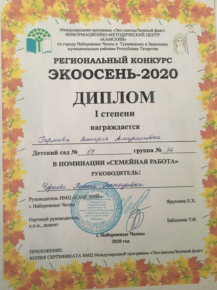 1.Творческий конкурс "Экоосень-20" Гарлиева Винария (диплом 1 степени)