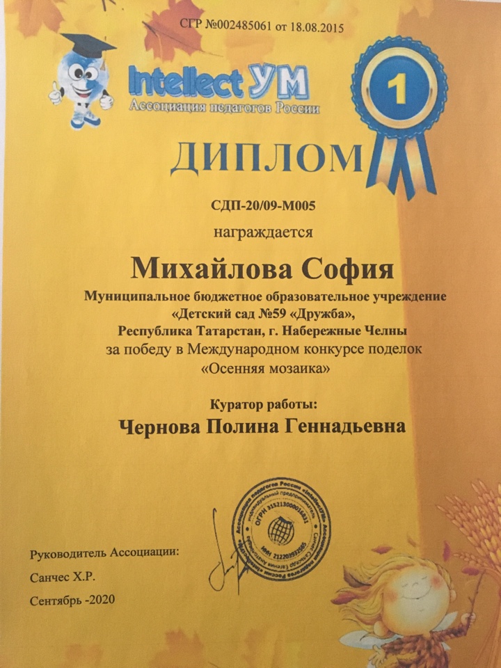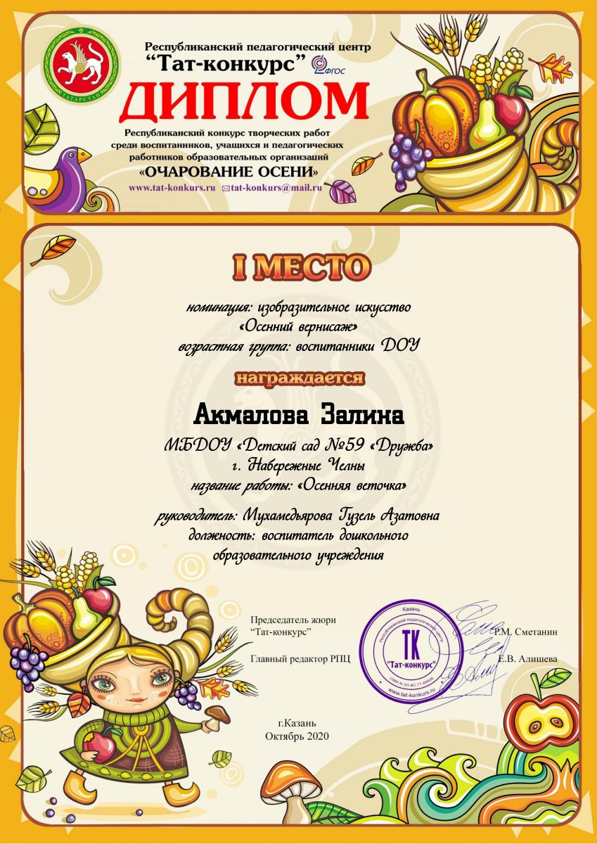 1. Творческий конкурс "Очарование осени" Акмалова Залина (Диплом 1 степени)