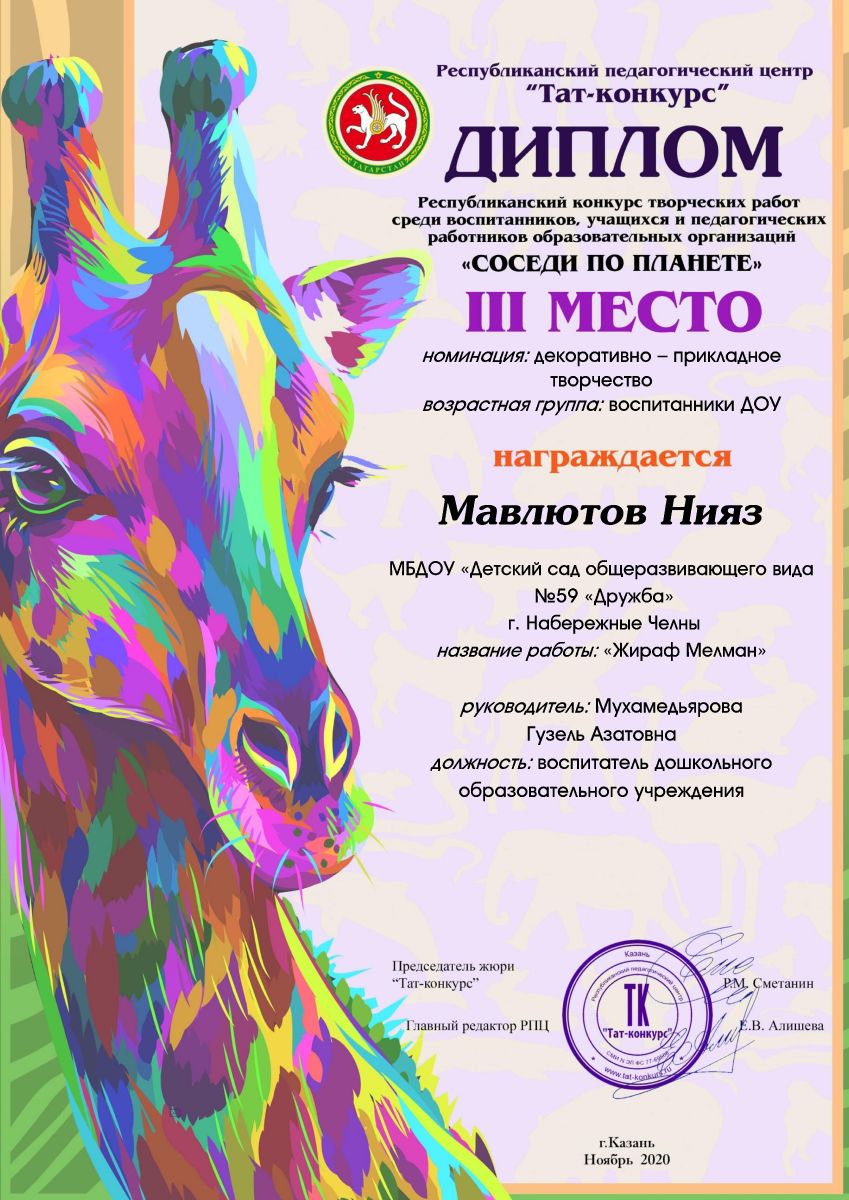 2.Творческий конкурс "Соседи по планете" Мавлютов Нияз (Диплом 3 степени)