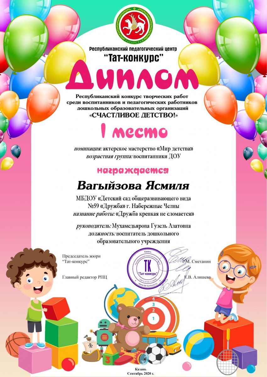 3.Творческий конкурс "Счастливое детство" Вагыйзова Ясмиля (Диплом 1 степени)