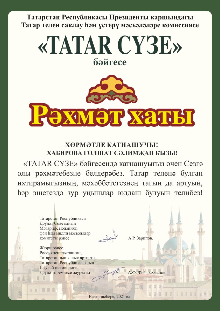 1. Коккурс "Татар сүзе" Хабирова Г.С.(благодарственное письмо)