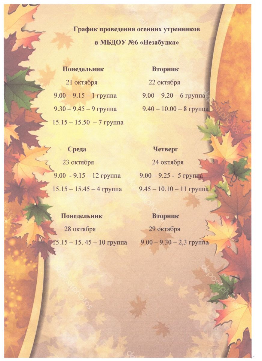 График проведения осенних утренников
