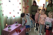 В честь героям Великой Отечественной войны в нашем детском саду создана Стена памяти. Воспитанники и педагоги ДОУ разместили на ней звёзды с фотографиями родственников - участников ВеликойОтечественной войны. 6 мая к вечному огню у Стены памяти дети возложили цветы. Вечная слава героям!