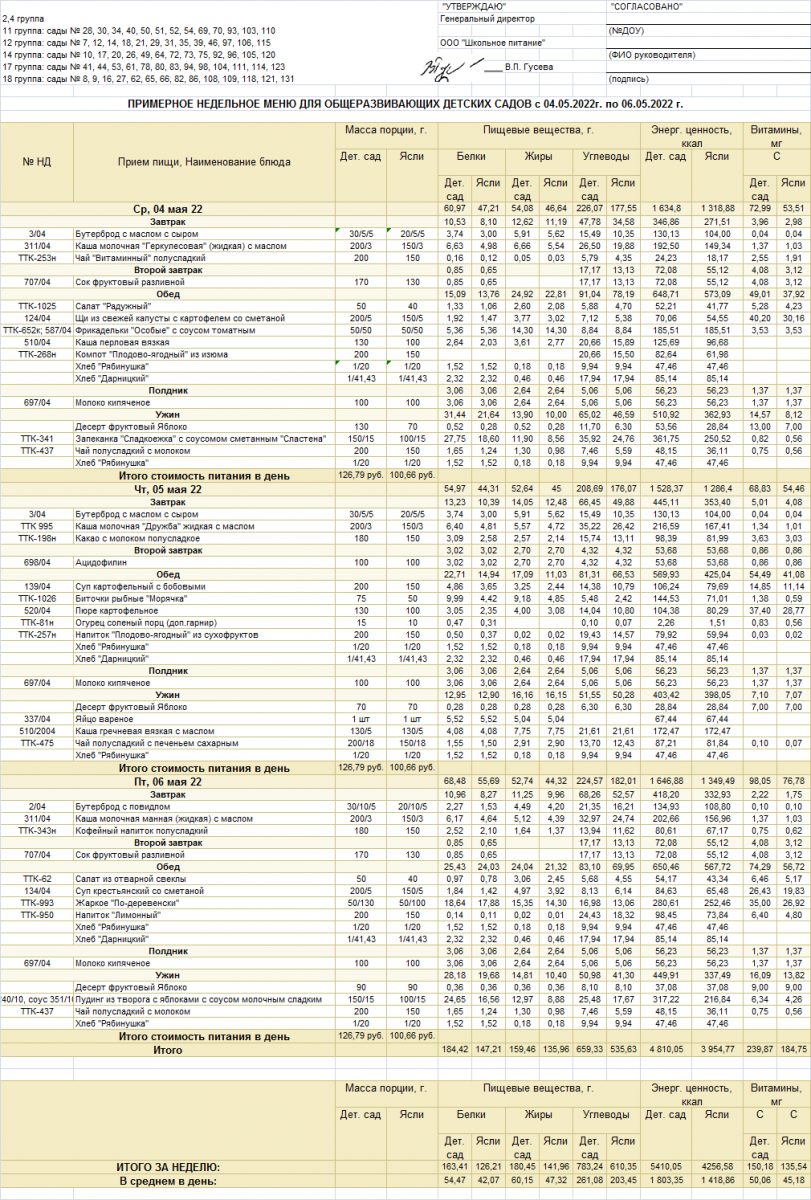 Меню на 04.05.2022-06.05.2022г. 29.04.2022
