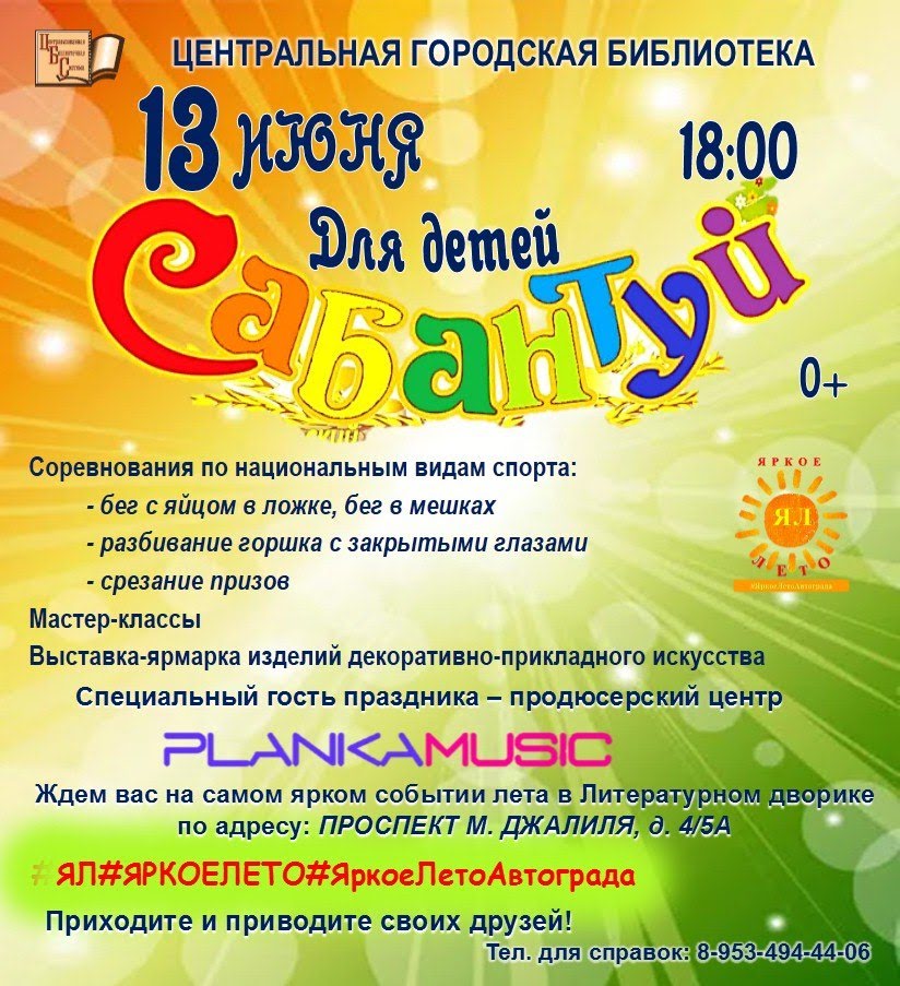 Уважаемые родители и сотрубники ДОУ! Предлагаем Вам мероприятия Сабантуя для детей и программу мероприятий Сабантуя. Желаем весёлого праздника!