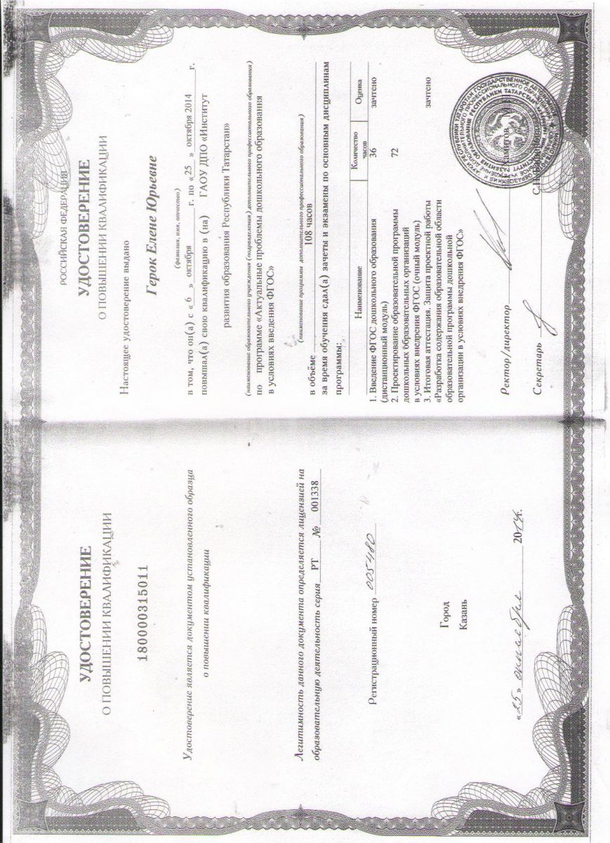 Учитель-дефектолог Герок Е.Ю. прошла обучение в ИРО г. Казань по сопровождению внедрения ФГОС.