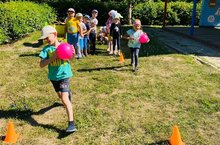 Сегодня наши ребята соревновались в командах. Всем хотелось победить. А помогла ребятам в победе - дружба!