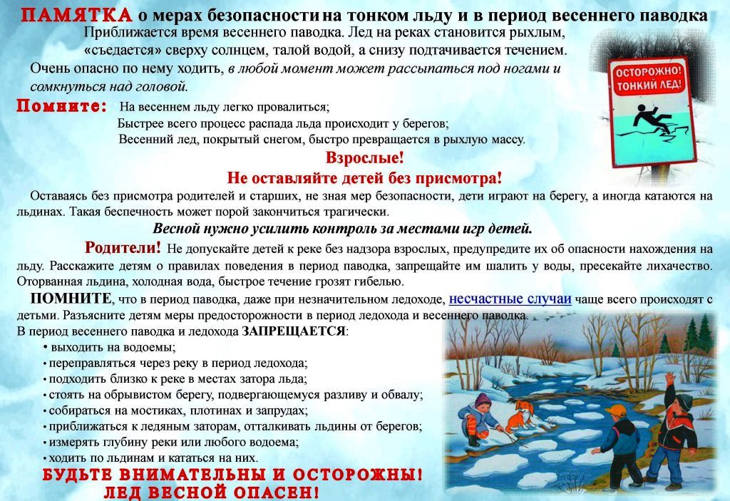 Памятка о мерах безопасности в период весеннего паводка