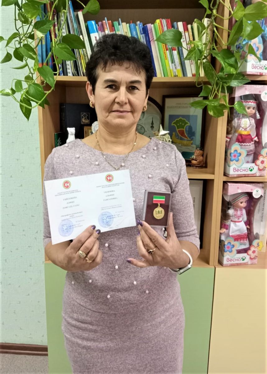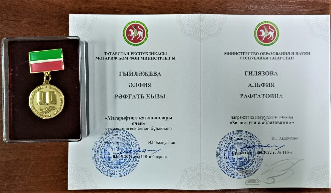Опубликовано: 21.10.2022ПОЗДРАВЛЯЕМ Альфию Равгатовну с заслуженной наградой, Нагрудным знаком РТ "За заслуги в образовании"!!!