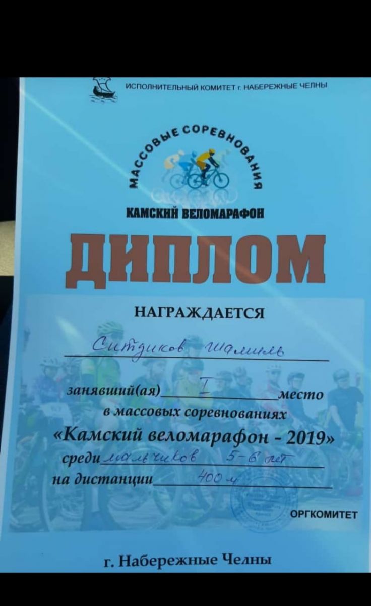 Сегодня прошел традиционный спортивный праздник «Камский веломарафон» на набережной Ф.Табеева выступали дети: Ивахненко Александр (8 гр.), Хасаншин Рамзан, Габдрафиков Ратмир (10 гр.), Певнев Ярослав, Ситдиков Шамиль, (12 гр.). соревновались на дистанции 400 и 100 м.