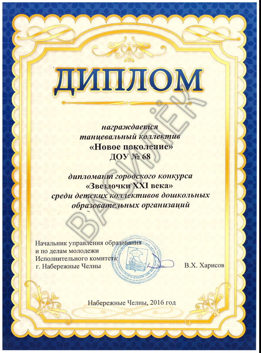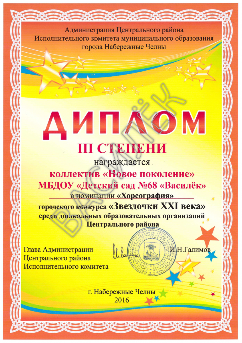 Танцевальный коллектив "Новое поколение", диплом III степени в городском конкурсе "Звездочки XXI века" среди ДОО Центрального района , 2016