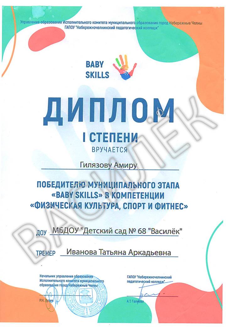 Гилязов Амир, диплом I степени чемпионата «BabySkills» по компетенции "физическая культура, спорт и фитнес", 2022