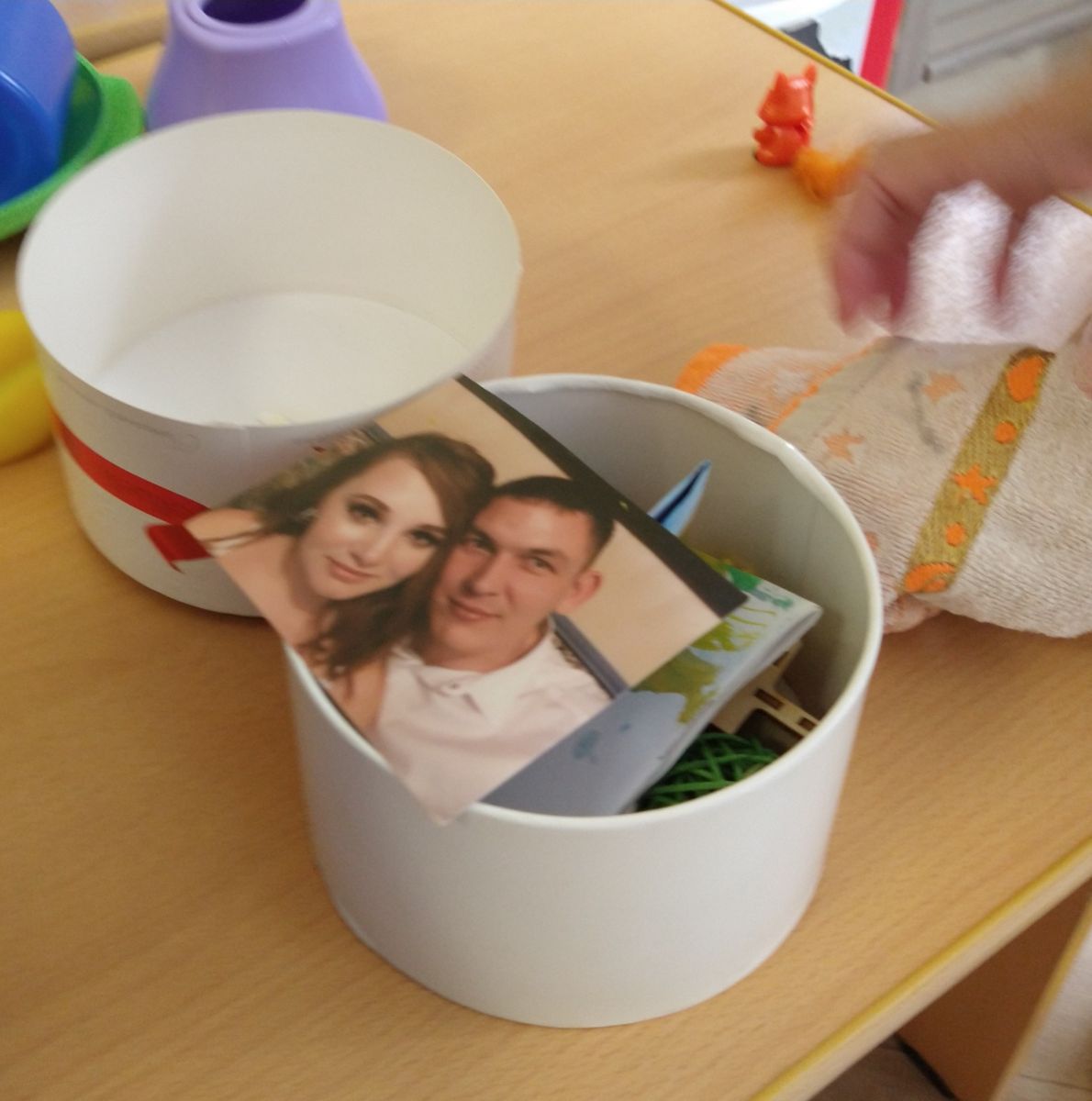 Сегодня в нашем светлом и уютном детском саду прошла добрая, радостная акция под названием "Корзинка добра и радости". Целью доброго мероприятия-стало укрепление связи родителей и детей, воспитания чувств любви и заботы к близким, а также вклад родителей в творчество детей. Родители наполнили корзинку для своего ребенка предметами, которыми можно было воспользоваться в течение дня. Каждая вещь, положенная родителями в корзинку, вызывала у ребят восхищение и радость, а глазки светились счастьем. Важно знать ребенку, что родители любят, даже если их нет рядом.