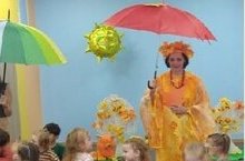 Сегодня в детском саду переполох: вредная и злая Мокринка заколдовала Раскрасавицу Осень. Еще вредная Мокринка хотела накормить наших ребят конфетами под названием Кашлечупсы!. Но наши воспитанники знают, что брать конфеты от"чужих" людей, да еще с таким названием, нельзя! Чтобы расколдовать Осень, нужно раздобыть волшебное лекарство. Наши смелые воспитанники отправились в путь, преодолевая препятствия, выполняя задания Тучки, Рябинушки, Деда Урожая, Лешего. У Деда Урожая ребята вскопали огород, собрали настоящий урожай: морковь, свеклу, помидоры, топинамбур. Лекарство раздобыли и расколдовали Осень. Вместе привечали Осень стихами, песнями, танцами да играми.