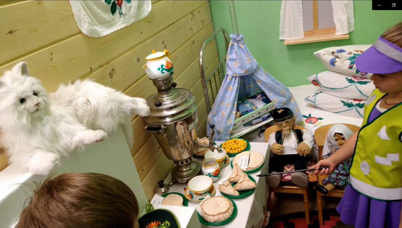 В нашем детском саду для всех желающих открыт мини-музей "Истоки народной культуры". Руководит музеем воспитатель по обучению детей татарскому языку Хаммадиева Мадина Валиулловна. Музей был создан в 2020 году. Экспонаты музея собирали всем "миром": родители, педагоги, сотрудники детского сада. В музее работают самые настоящие экскурсоводы - наши воспитанники из подготовительной к школе группы Валерия и Валера.