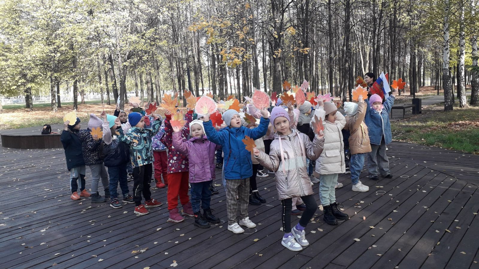 И ребята-дошколята отправились в поход, чтобы поприветствовать парк, полюбоваться его красотой и встретиться с самой красавицей Осенью и ее друзьями: Тучкой-вреднючкой и домовитым хозяином парка Лешим.