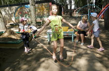лето в детском саду 13.07.2016 прыжки через скакалку - дети 11 группы