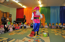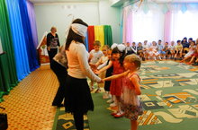 В подготовительной группе № 2 ребята поводили хоровод с осенними персонажами с Ветром и Слякотью.
