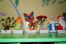 Выставку в группе № 7 подготовили из тех поделок, которые смастерили мамы этой группы. Вот какие мастерицы!