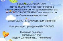 Приглашение на консультацию "Все о песочной терапии" 15.09.2020