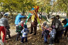 Сегодня на территории детского сада для маленьких ребятишек была проведена квест -игра, где они вместе с родителями шли по следам колобка и встретились со сказочными героями: заяц, медведь, волк и лиса. Ребята с удовольстием пели песни, танцевали, играли и смогли вернуть колобка бабушке с дедушкой.